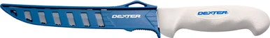 The Legendary Dexter SG142-8TEEG Sofgrip 8in Tiger-Edge Scalloped Bait Cutter goes through bait (both fresh and frozen), scales, and can fillet a fish with ease. It’s a great all-around knife for bait, cutting cartilage, and processing your fish. It features Dexter’s SOFGRIP handle that is soft to the grip and provides great control along with slip resistance, and a blade made of proprietary high carbon, high alloy, stain free DEXSTEEL. NSF certified and made in the USA, this knife includes an Edge Guard blade protector.