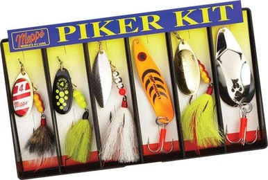 Big pike love dressed spinners. Dressed spinners present a larger profile than plain spinners so they naturally attract larger fish. Three generations of pike fishermen have considered Mepps their confidence lure. And for good reason. When it comes to getting the attention of big pike, you can’t beat the thump of a spinner or the flash of a spoon. This classic Mepps Piker kit features six of their best lures for trophy pike… four dressed spinners and two Syclops spoons. Big pike are tough on tackle. Any pike angler will appreciate the quality built into these durable lures. Beginning with solid brass components, each lure is specifically designed to handle big pike, cast after cast.