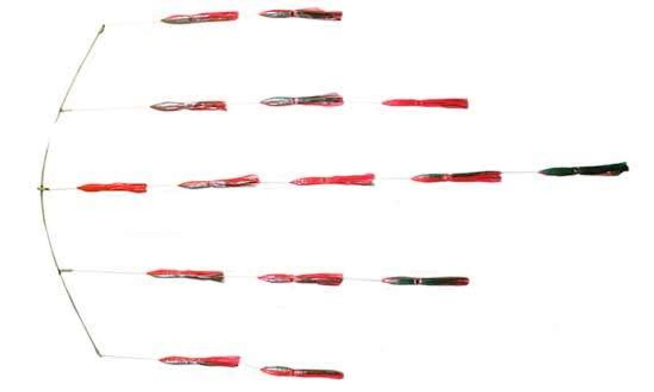 This Tournament Quality Squid Spreader Bar Has (15) 9″ Squids in a 2-3-5-3-2 Pattern Rigged and ready to catch on 42″ Stainless Bar. Tuna, Marlin, Sailfish, Wahoo, Mahi and other Pelagics cannot resist the action of this bar. Rigged with 200Lb mono and 9/0 Hook! Each squid is rigged with a Titanium Bar and Floats inside. All of our Spreader Bars Include a High Quality Bag. You won’t find a nicer bar and bag for the money ANYWHERE! Our bars will raise fish and won’t break the bank!