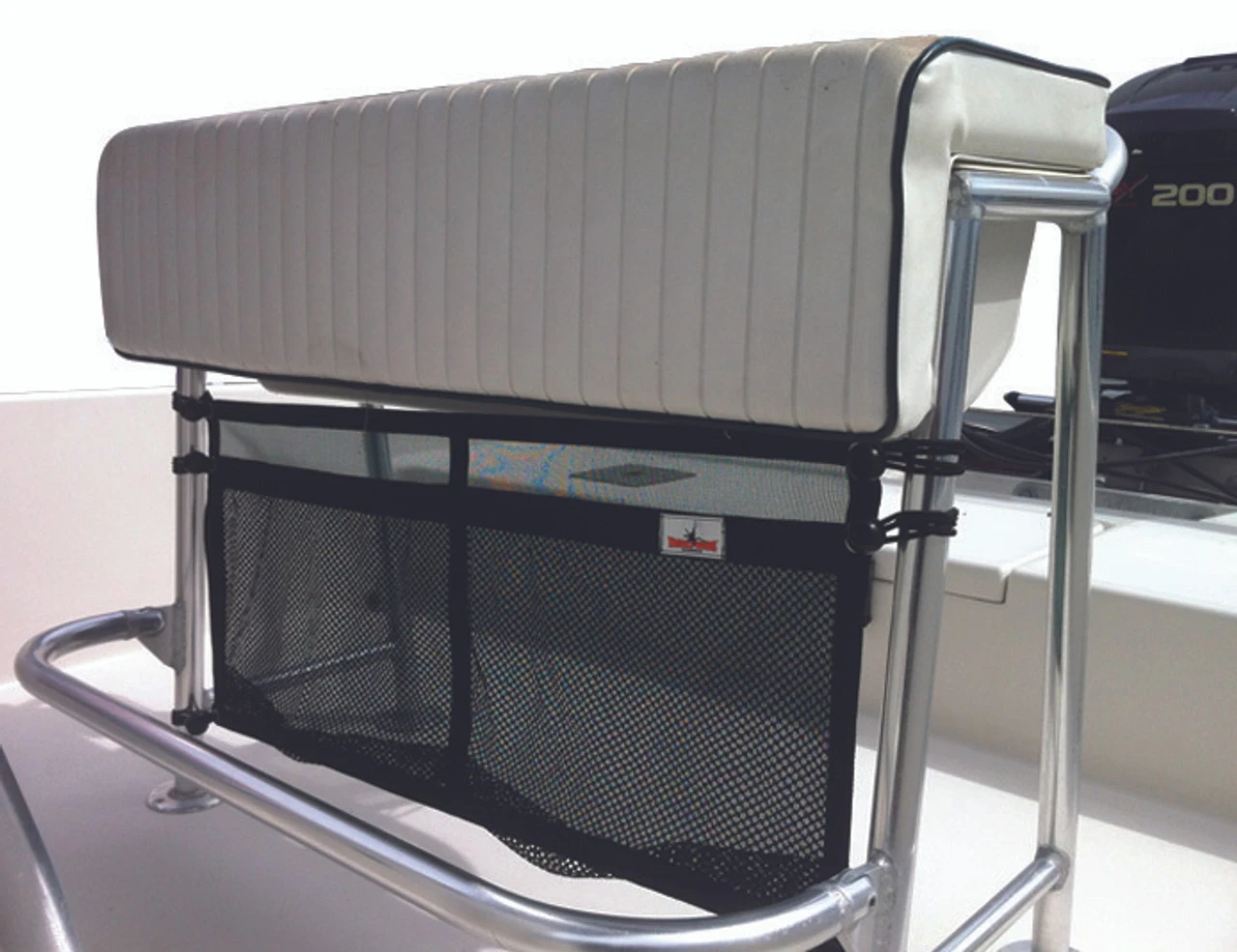 The TackleWebs Bungee/Grommet 32in x 15in Gear Storage Double Pocket is part of a multi use suspending storage system perfect for use on all types of watercraft. Tacklewebs storage pockets using the bungee/grommet system utilize stainless steel grommets and six bungee cord straps to allow the pockets to be installed in a wide variety of locations. The bungee system is perfect for installing TackleWebs between rails on your boat, on the backs of kayak seats, or in other locations where permanent mounting is not an option. The pockets utilize a zipper-less hook and loop closure to safely secure contents while avoiding corrosion and zipper failures.